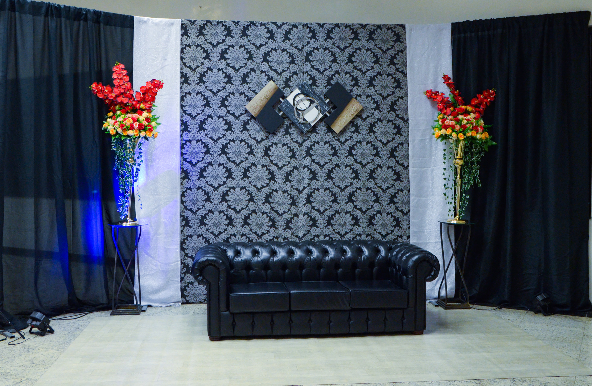02) Decoração: Os ambientes serão finamente decorados assim como os cenários fotográficos com fundo em tecidos e luzes de led, um dos