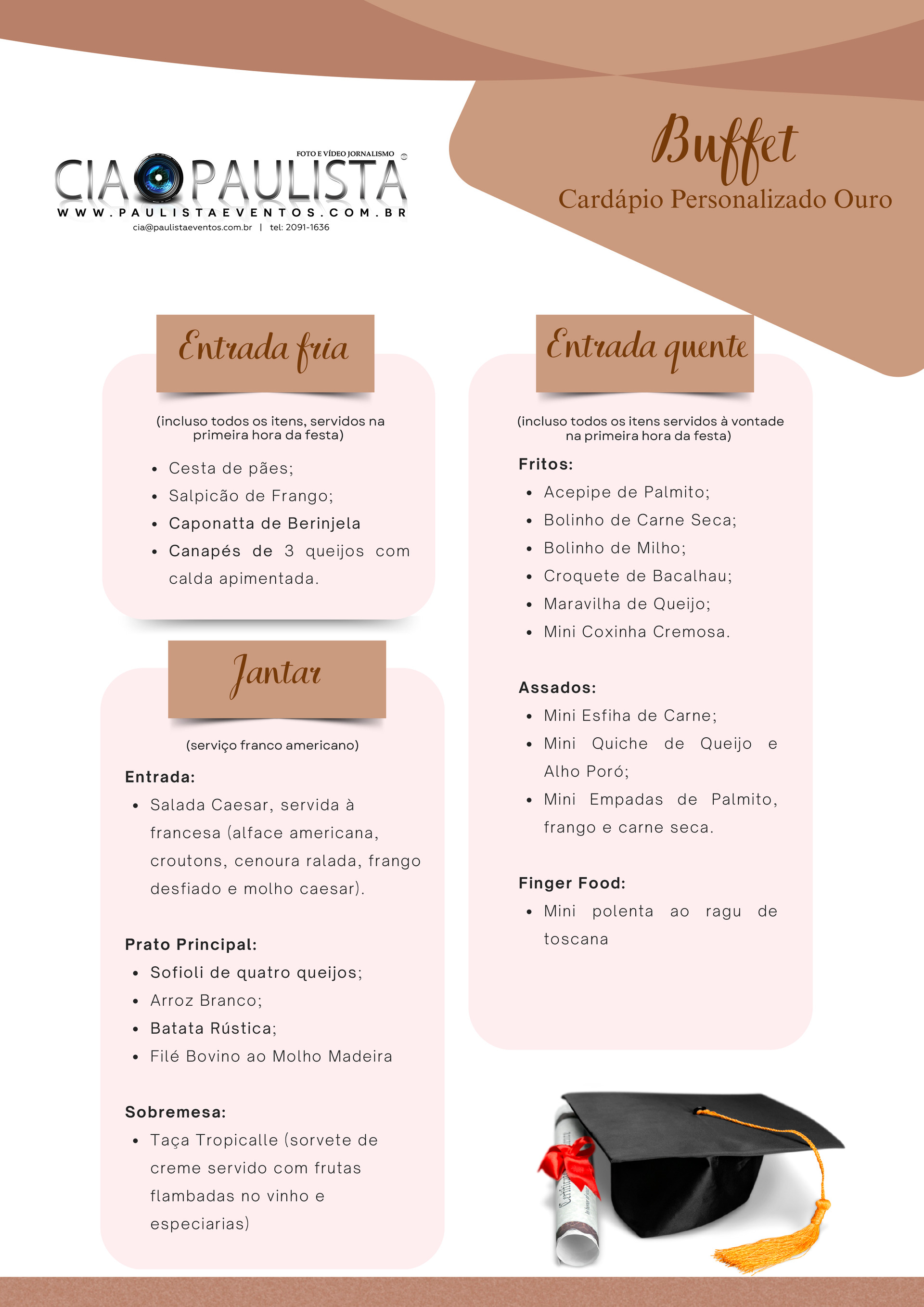 Apresentamos a seguir o resumo dos serviços e produtos pertinentes ao contrato de Formatura: