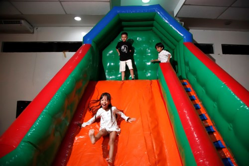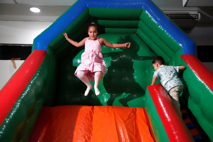 19) Brinquedos: Dois brinquedos montados após a colação para as crianças brincarem até o final do evento.